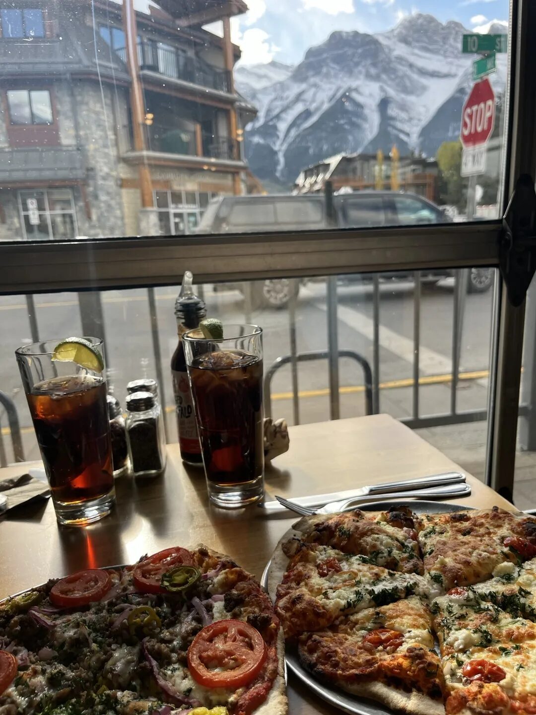 밥시간을 놓친 채 달려오던 중, 캔모어라는 마을을 발견해 차를 돌렸다. 즉흥적으로 피자를 먹기로 결정하고 주변에서 평점이 가장 좋은 피자집으로 향했다.