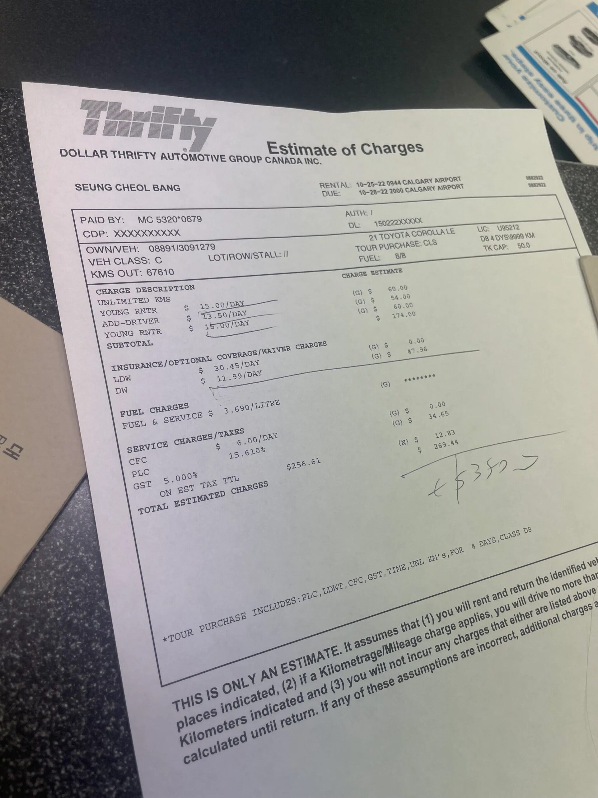 공항에 도착하자마자 예약해둔 랜트카를 받으러 갔다. 예산을 고려해 업그레이드는 포기하고 추가 운전자 등록만 하기로 했지만, 예상치 못한 문제가 발생했다.