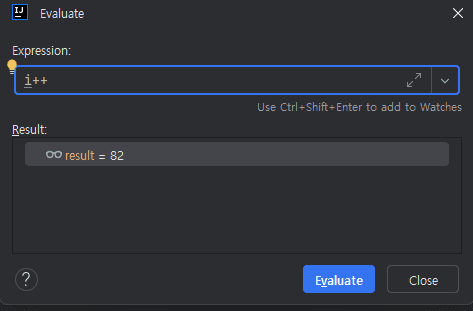 디버깅 중에는 Evaluate 기능을 통해 현재 스코프에서 사용할 수 있는 메서드나 표현식을 실행해 볼 수 있다.