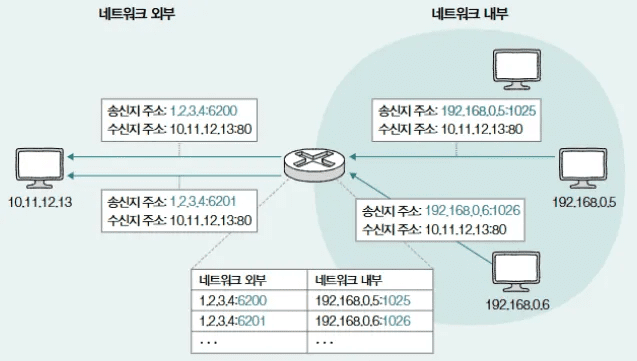 대부분의 가정이나 소규모 네트워크에서는 여러 내부 호스트가 하나 또는 소수의 공인 IP를 공유합니다.