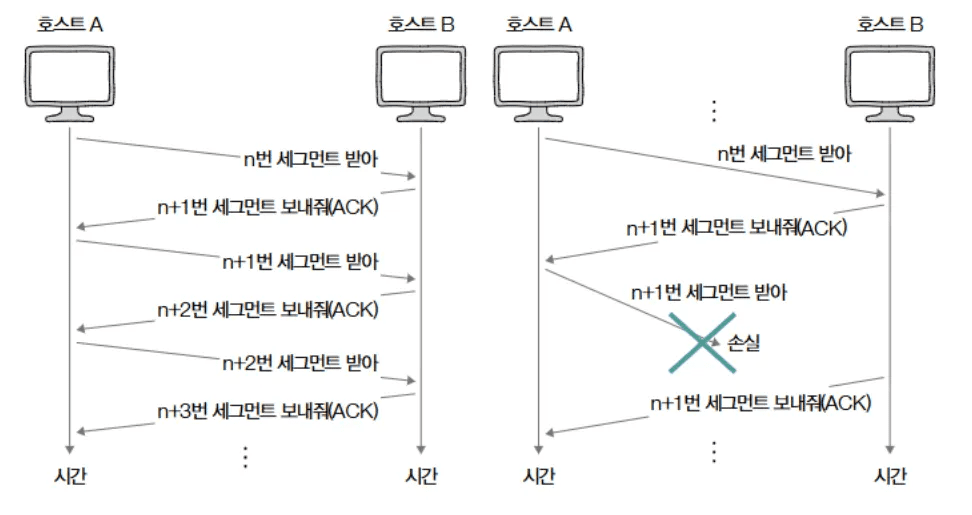 - 오류 제어: 재전송, 중복 ACK, 타임아웃 등을 통해 전송 오류를 감지하고 복구합니다.