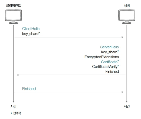 - TLS 핸드셰이크: 인증과 암호화에 필요한 키 생성 및 교환, 인증서 검증 등이 이루어집니다.