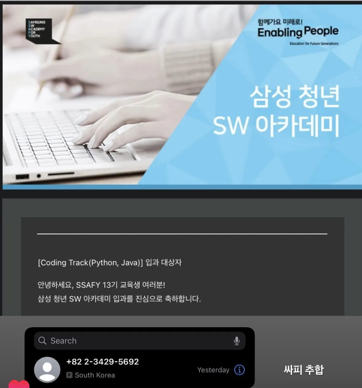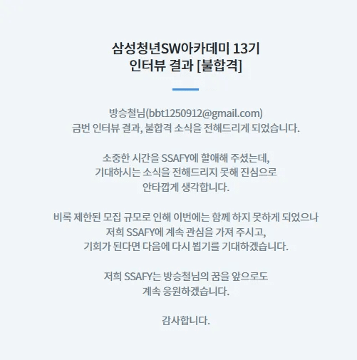 SSAFY 13기 최종 면접 결과는 불합격이었다.